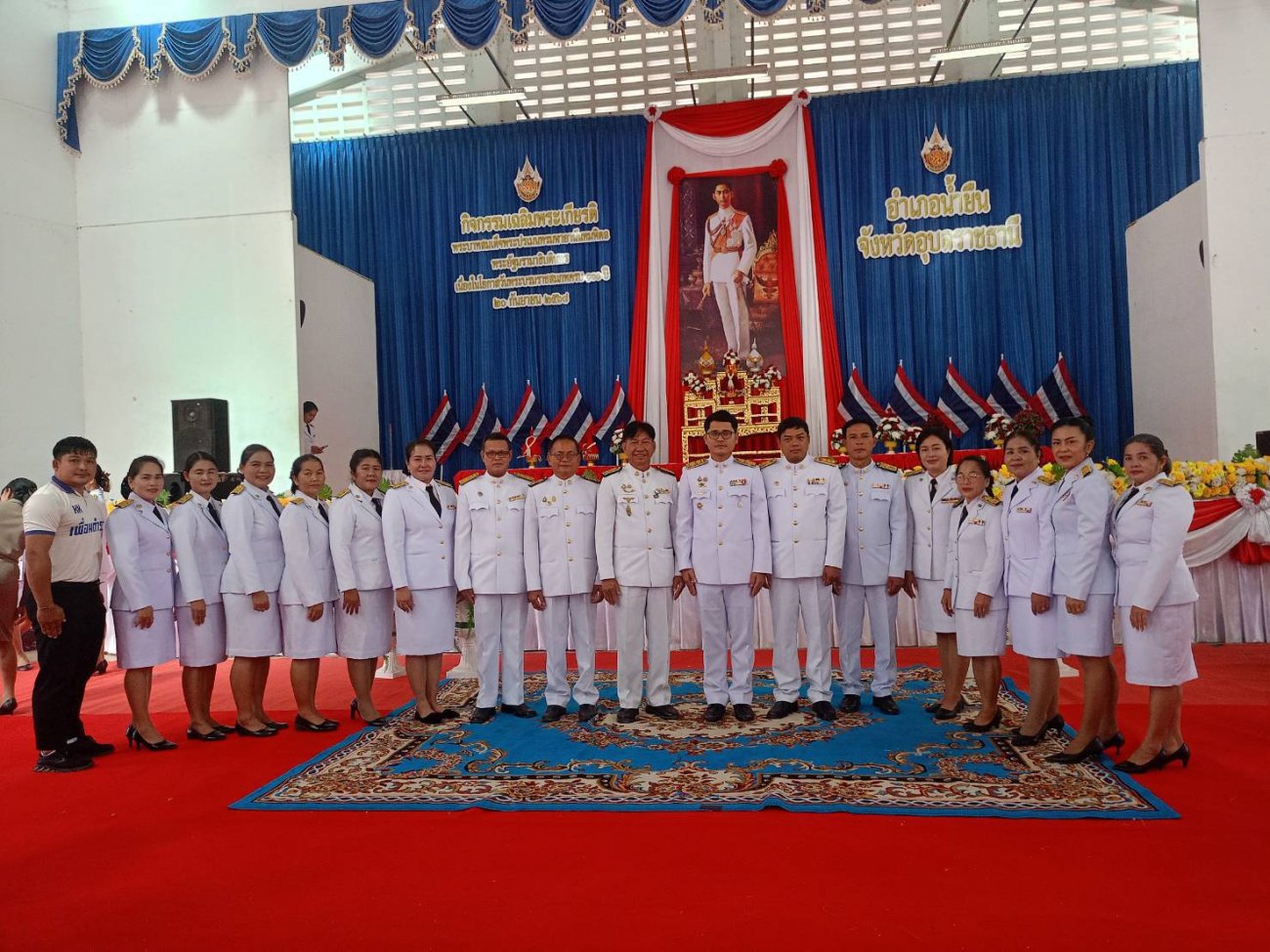 นายบัณฑิต ศรีทา รองนายกองค์การบริหารส่วนตำบลโดมประดิษฐ์ พร้อมพนักงานส่วนตำบล พนักงานจ้าง ร่วมกิจกรรมเฉลิมพระเกียรติ พระบาทสมเด็จพระปรเมนทรมหาอานันทมหิดล พระอัฐมรามาธิบดินทร เนื่องในโอกาสวันพระบรมราชสมภพครบ ๑๐๐ ปี ณ หอประชุมอำเภอน้ำยืน