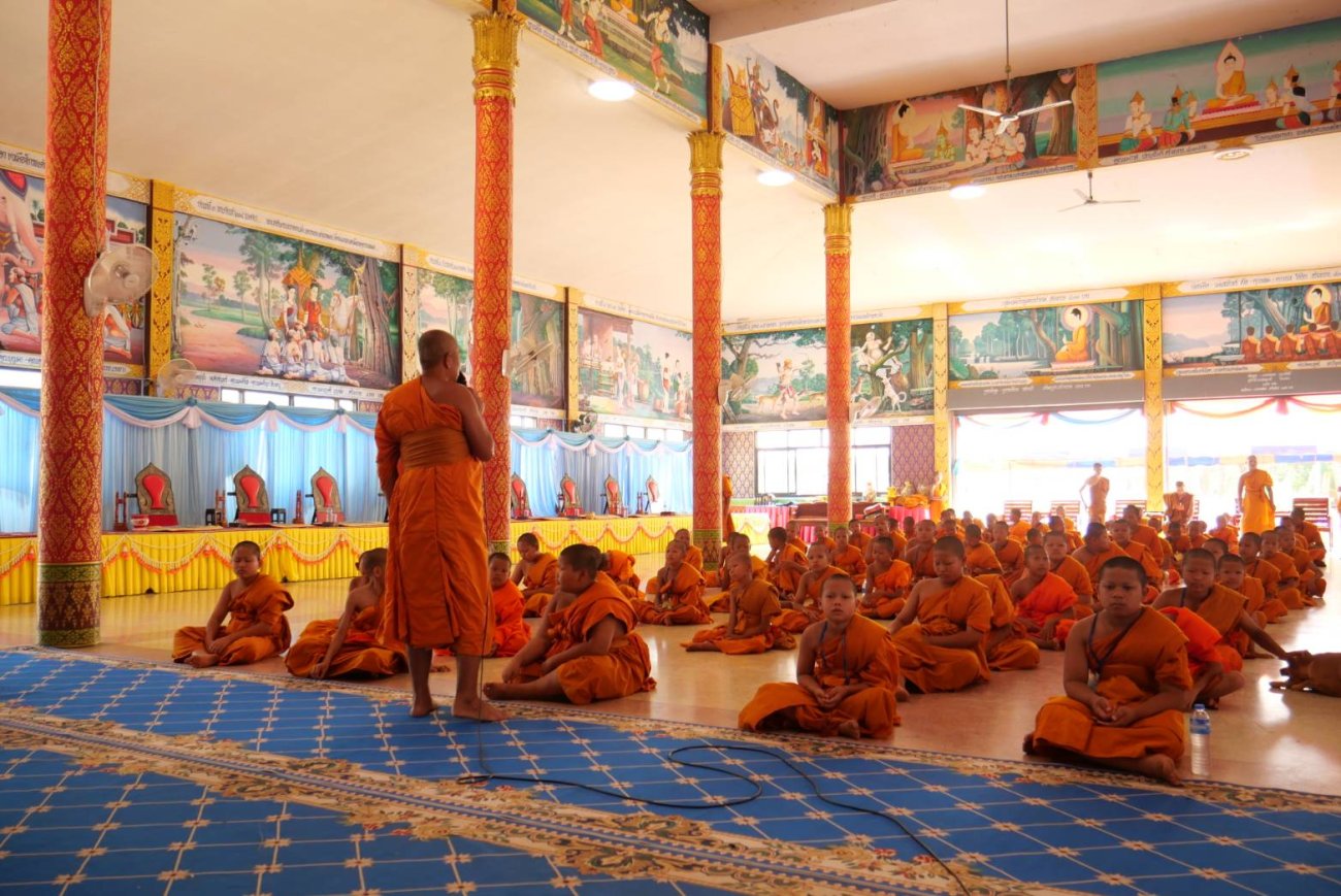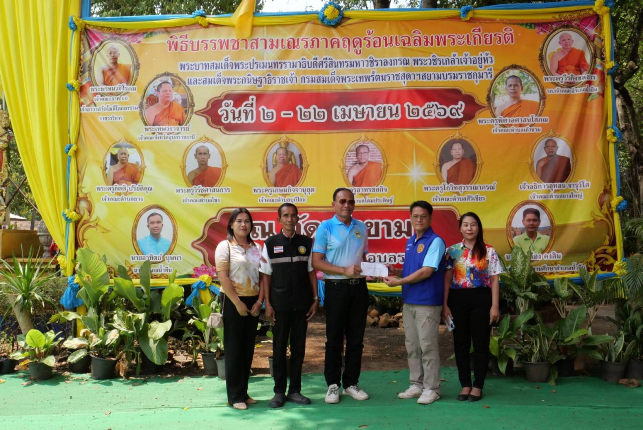 นายบุญโฮม บัวหอม นายกองค์การบริหารส่วนตำบลโดมประดิษฐ์ นายสมศักดิ์ วิลานันท์ รองนายกองค์การบริหารส่วนตำบลโดมประดิษฐ์ พร้อมคณะ ร่วมเป็นเจ้าภาพถวายภัตตาหารเพลแด่พระสงค์ สามเณร โครงการบรรพชาสามเณรภาคฤดูร้อนเฉลิมพระเกียรติ ณ วัดบ้านเก่าขาม ตำบลเก่าขาม อำเภอน้ำยืน จังหวัดอุบลราชธานี